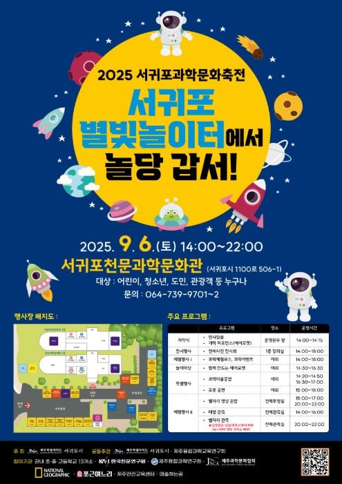 [와이뉴스] 서귀포시는 '2025 서귀포과학문화축전'을 오는 9월 6일 14시부터 22시까지 서귀포천문과학문화관(서귀포시 1100로 506-1)에서 개최한다.