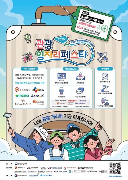 [와이뉴스] 문화체육관광부는 한국관광공사, 한국호텔업협회 등 관광 유관 기관 및 단체와 함께 9월 30일부터 10월 1일까지 에이티센터(aT센터, 서울 서초구)에서 ‘2025 관광 일자리페스타’를 개최한다.