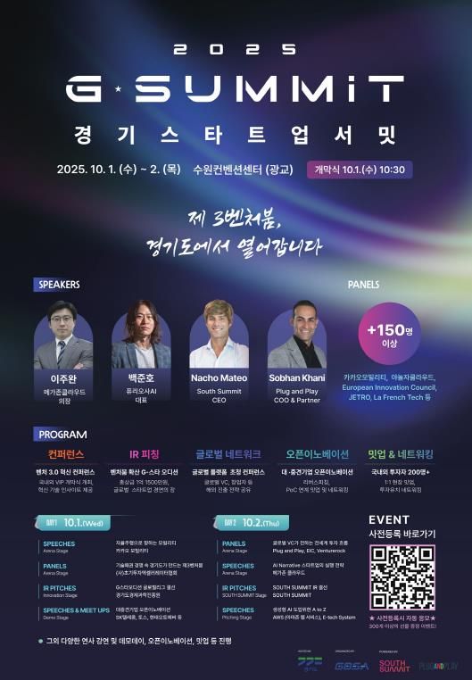 올해부터는 ‘G-SUMMIT’(지-서밋)이라는 새 브랜드로 글로벌 확장성과 지속가능성을 한층 강화했다. 행사 주제는 ‘제3벤처붐, 경기도에서 열어갑니다’로 정해, 단순한 창업 축제를 넘어 스타트업과 투자자를 연결해 실질적인 투자 성과를 창출하는 대한민국 대표 투자유치의 관문이 되겠다는 뜻을 담았다.