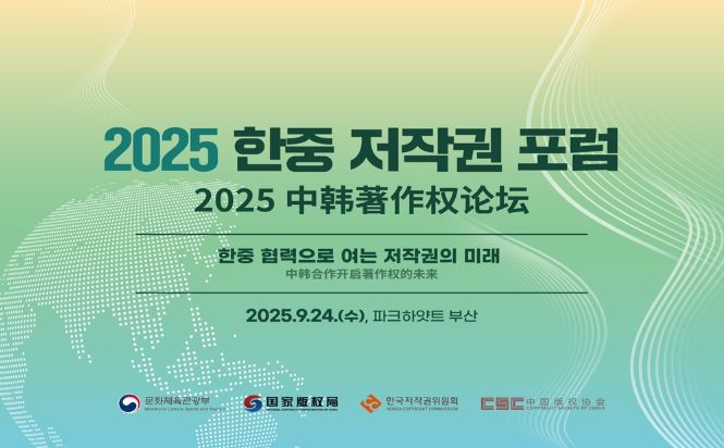 [와이뉴스] 문화체육관광부는 한국저작권위원회, 중국 국가판권국과 함께 9월 24일, 파크하얏트 부산에서 ‘2025 한중 저작권 정부간회의(오전)’와 ‘2025 한중 저작권 포럼(오후)’을 열어 저작권 보호를 위한 양국 협력 방안과 인공지능(AI), 블록체인 등 기술 발전에 따른 저작권 정책 변화 및 대응을 논의한다.