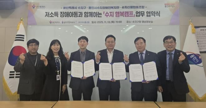 [와이뉴스] 용인특례시 수지구는 13일 용인시수지장애인복지관과 수지신용협동조합과 함께 저소득 장애아동의 복지 향상과 장애 인식 개선을 위한 ‘수지 행복캠프’ 추진 업무협약을 체결했다고 14일 밝혔다.
