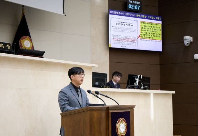 [와이뉴스] 용인특례시의회 김병민 의원(구성동,마북동,동백1동,동백2동/더불어민주당)은 16일 열린 제298회 임시회 제1차 본회의에서 5분 자유발언을 통해 ‘제2차 경기도 도시철도망 구축계획’에 반영된 동백–신봉선 철도망의 원활한 추진을 위한 정책적 대응과 선제적 준비를 강력히 촉구했다.