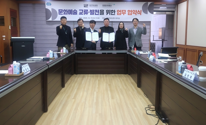 [와이뉴스] 경기아트센터(사장 김상회)가 12월 17일 양평문화재단(이사장 박신선)과 문화예술 교류와 지역 문화예술 발전을 위한 업무협약을 체결했다. 협약식에는 경기아트센터 김상회 사장과 양평문화재단 박신선 이사장을 비롯해 양 기관 관계자들이 참석했다.