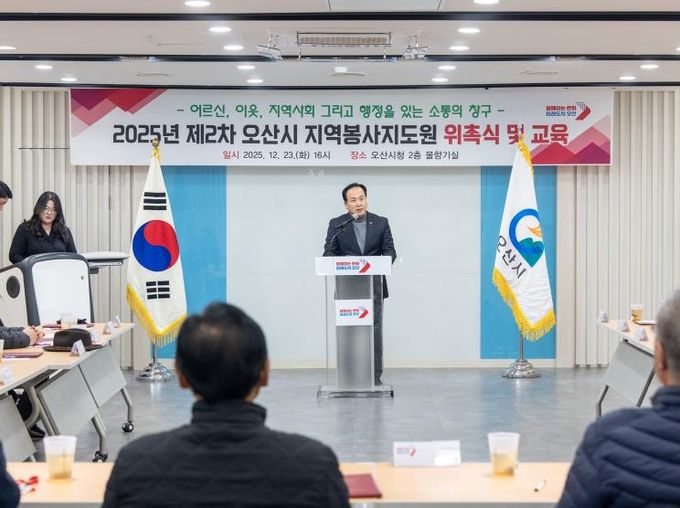 [와이뉴스] 오산시는 지난 23일 오산시청 물향기실에서 신규 경로당 회장을 대상으로 한 '2025년 지역봉사지도원 위촉식'을 개최했다고 밝혔다.