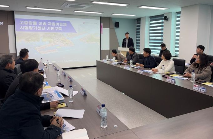 [와이뉴스] 경상남도는 16일 오전 10시 김해시 한림면 명동일반산업단지 내 미래자동차버추얼센터에서 ‘고중량물 AMR(자율이동로봇) 시험평가센터’ 추진상황 점검보고회를 개최했다.