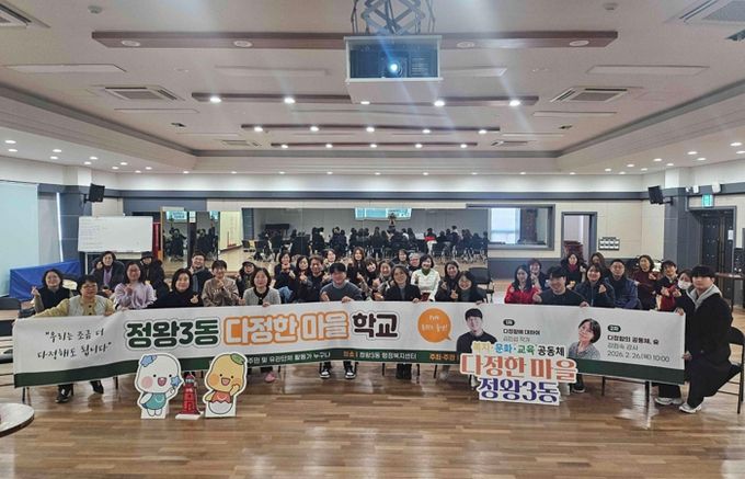 [와이뉴스] 시흥시 정왕3동 행정복지센터는 지난 2월 6일 센터 3층 대강당에서 주민 40여 명이 참석한 가운데 ‘2026년 정왕3동 다정한 마을 학교’ 1차 강좌를 열었다.