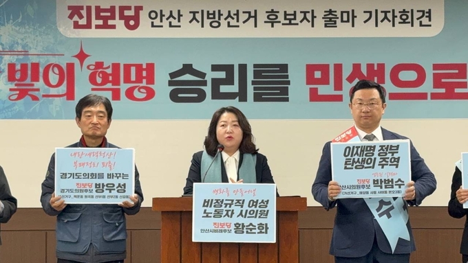 진보당 안산시의회 비례대표의원 후보로 출마할 예정인 황순화 후보는 “경기도교육청을 상대로 돌봄노동자 처우 개선을 위해 10여일간 노숙·삭발·단식농성을 진행해 초등돌봄교실 노동자들의 고용안정을 이끌어 냈던 경험이 있다”며 “시민의 삶을 지키고 더 정의롭고 따뜻한 안산을 만들어 시민의 목소리를 시정의 중심에 세우는 정치를 하겠다”고 했다.