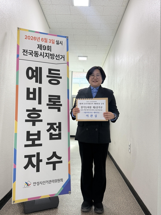 [와이뉴스] 이관실 안성시의원이 제9회 전국동시지방선거 경기도의원 안성시 제1선거구 예비후보로 등록하며 본격적인 경선 레이스에 돌입했다고 3일 밝혔다.