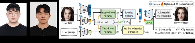 최근 영화나 게임 분야에서 인공지능(AI)을 이용해 다른 사람의 얼굴을 자연스럽게 합성하는 ‘딥페이크(face-swapping)’ 기술이 빠르게 발전하면서, 무단 얼굴 도용 및 디지털 성범죄, 사기, 허위 영상 제작 등 심각한 범죄에 악용되는 사례도 늘어나고 있다. 이에 대응하는 기존 기술은 이미 만들어진 딥페이크를 찾아내는 ‘사후 탐지’ 방식이 대부분이었지만, 제안 기술은 사진을 SNS에 올리기 전에 미리 보호 처리를 해, 누군가 그 사진을 이용해 얼굴을 바꾸려 해도 딥페이크 결과가 자연스럽지 않게 나오도록 만드는 사전 방어 기술이라는 점에서 차별성을 갖는다.