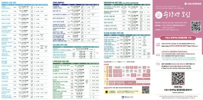 [와이뉴스] 수원특례시는 3월 25일 오전 10시부터 수원시 평생학습관 2026년 2분기 프로그램 수강생을 모집한다.