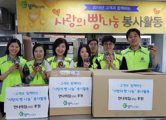경기도시공사는 성남 소재 희망나눔봉사센터에서 고객 가족을 초청해 ‘사랑의 빵 나눔’ 봉사활동을 실시했다고 앞선 21일 밝혔다.