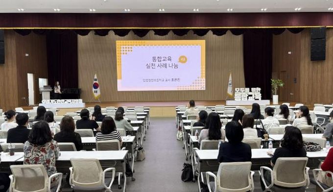 ‘2025학년도 통합교육 실천 사례 나눔’을 주제로 운영된 이번 연수는 학교급별 통합교육 실천 사례 공유를 통해 효과적인 통합교육 운영 방안을 탐색하고, 통합교육 관련 이슈에 대한 학교 구성원의 공감대를 형성하여 교육 공동체의 통합교육 실행 역량을 강화하고자 기획했다.