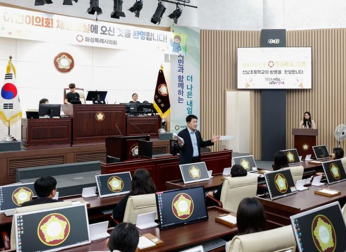 [와이뉴스] 화성특례시의회는 13일, 남양읍에 위치한 신남초등학교 학생들을 대상으로 ‘어린이의회 체험 교실’을 운영했다.