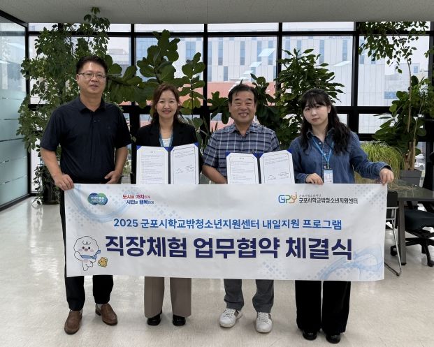 [와이뉴스] 군포시청소년재단(대표이사 김덕희), 군포시학교밖청소년지원센터(센터장 강연미)는 시각디자인 분야로의 진학과 진로를 희망하는 학교 밖 청소년을 지원하기 위해 관내 디자인 전문업체인 ㈜은진과 직장체험 업무협약을 체결했다고 밝혔다.