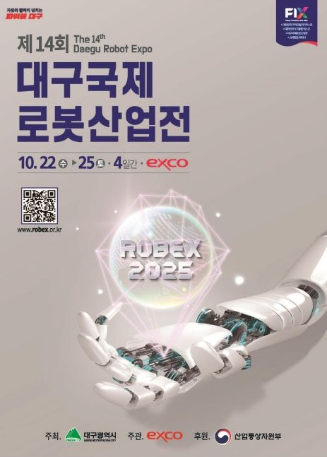 [와이뉴스] 최첨단 로봇 기술과 최신 트렌드를 한자리에서 만나볼 수 있는 로봇산업 전문 전시회 ‘2025 대구국제로봇산업전(ROBEX 2025)’이 오는 10월 22일부터 25일까지 4일간 엑스코에서 열린다.