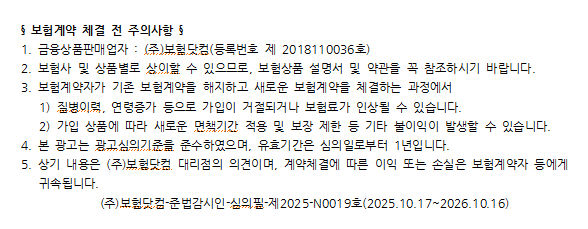 보다 자세한 가입 조건이나 적정 진단금액 설정은 비갱신형 암보험 비교사이트를 활용하여 여러 회사의 상품을 실시간으로 보험료 비교도 해볼 수 있으며, 다양한 정보를 비대면으로 주말까지 전문가와 상담이 가능하므로 3대진단비 등 종합건강보험 가입 시 편리하게 이용할 수 있다.
