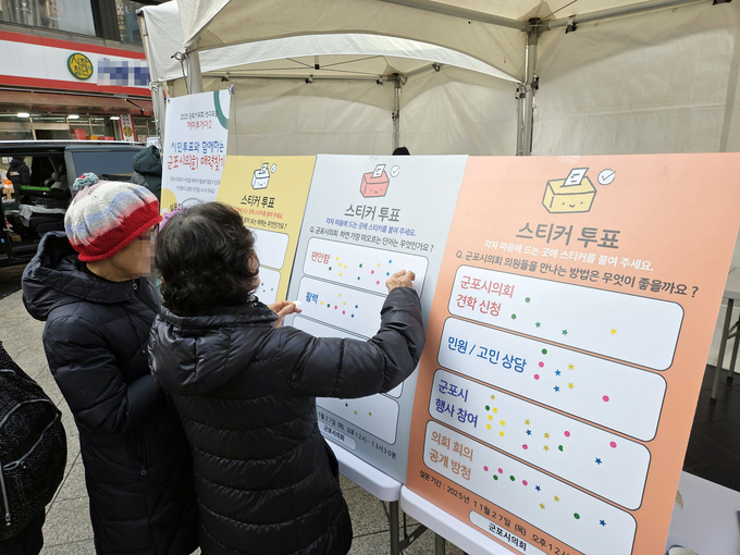 제시된 예시에 대한 스티커 투표 방식으로 진행된 이 설문에는 100명이 참여했고, 시의회는 이번 설문 자료를 정리해 시민의 의정 참여 활성화와 홍보 방식 개선 등을 추진할 예정이다.