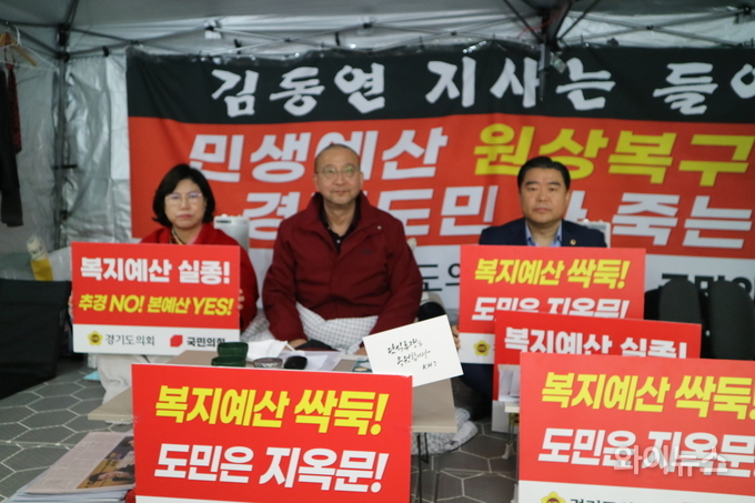 [와이뉴스] 백현종 경기도의회 국민의힘 대표가 복지·민생 관련 예산이 대폭 삭감된 사안에 문제를 제기하며 앞선 11월 25일부터 경기도의회 1층 로비에서 단식 농성에 돌입했다.