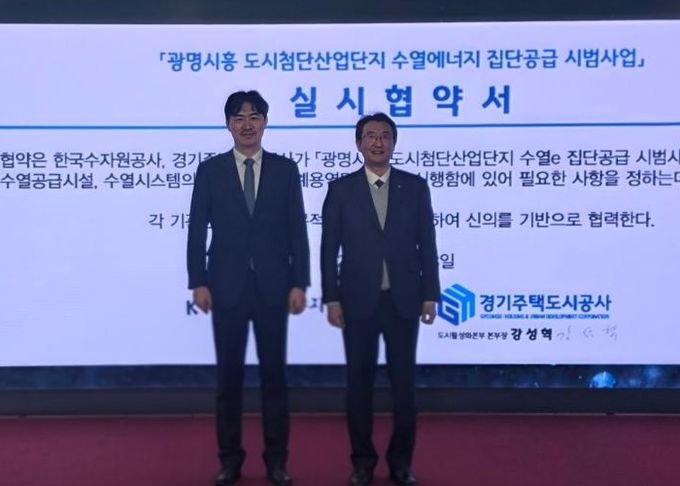 [와이뉴스] 경기주택도시공사(GH)는 3일 GH 수원 본사 9층 역량개발센터에서 한국수자원공사(K-water)와 함께 ‘광명시흥 도시첨단산업단지 수열에너지 집단공급 시범사업’ 추진을 위한 실시협약을 체결했다고 밝혔다. 이 자리에는 양 기관 관계자 약 30명이 참석했다.