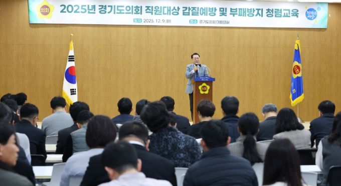 [와이뉴스] 경기도의회는 9일 오전 의회 대회의실에서 전 직원을 대상으로 ‘갑질예방 및 부패방지 청렴교육’을 실시했다.