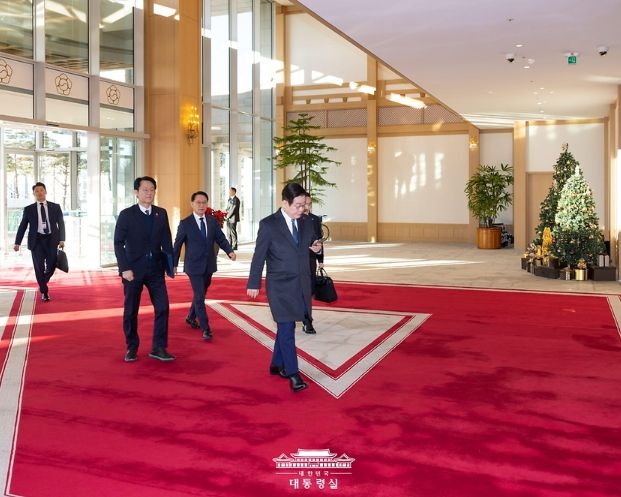 [와이뉴스] 이재명 대통령이 26일 청와대 복귀를 앞두고 용산 대통령실로 마지막 출근을 하고 있다.