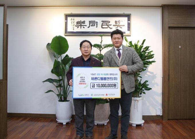 [와이뉴스] 남양주시는 5일 바른디벨롭먼트 주식회사가 지역 내 취약계층 지원을 위해 후원금 1천만 원을 남양주시복지재단에 기탁했다고 밝혔다.
