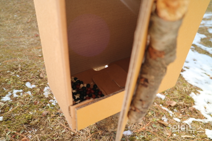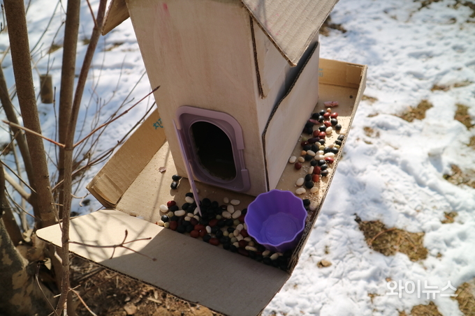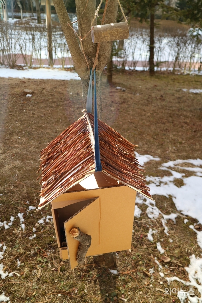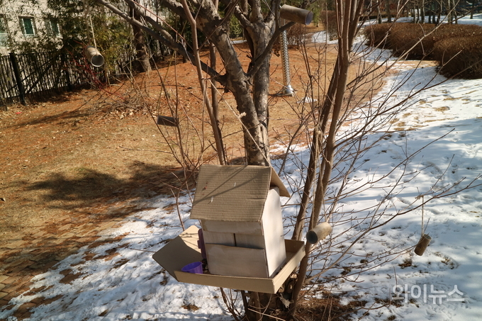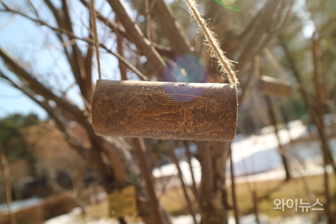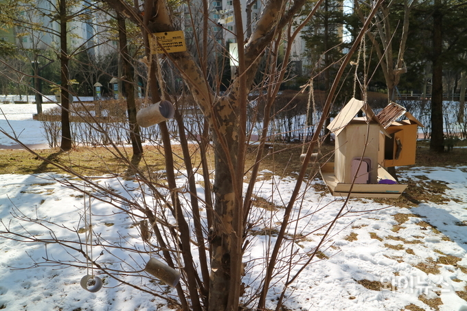 [와이뉴스] 눈 내리는 겨울 새들이 덜 춥고 배고프지 않기를 바라는 마음이 공원 한편 나무에 걸렸다.