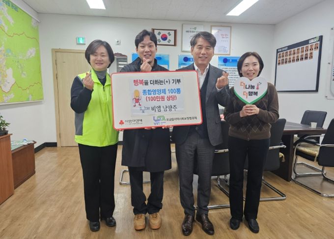 [와이뉴스] 남양주시는 4일 유통 전문회사 비엠 남양주가 지역 내 취약계층을 위해 마련한 종합영양제 100통을 오남읍 지역사회보장협의체에 전달했다고 밝혔다.