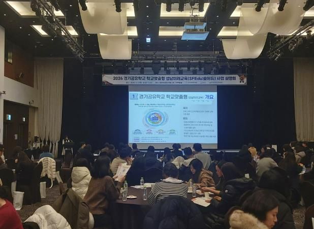 [와이뉴스] 경기도성남교육지원청은 5일 밀리토피아호텔에서 관내 초·중·고·특수학교 교원 및 지자체 관계자 등 300여 명이 참석한 가운데 ‘2026 경기공유학교 학교맞춤형 성남미래교육(숲에듀) 사업설명회’를 개최했다.