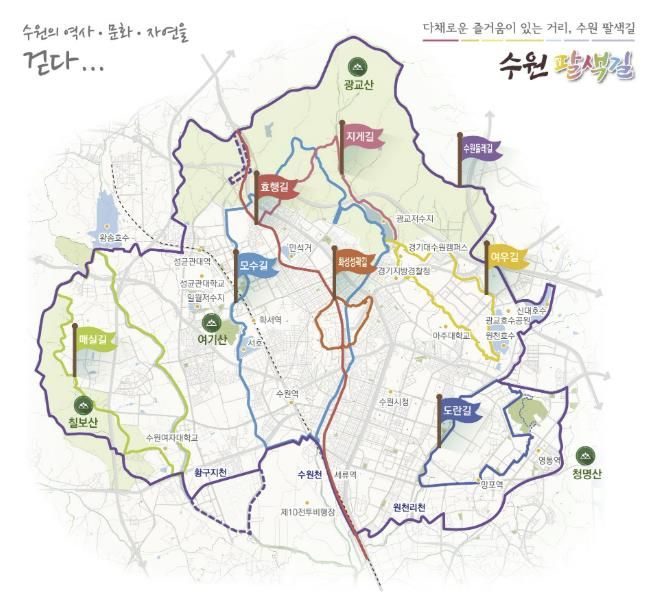 수원시 관계자는 “도시 변화로 단절된 구간을 연결하고 노후화된 안내 시설을 정비하는 데 중점을 뒀다”며 “앞으로도 대중교통과 연계한 보행 환경을 체계적으로 관리해 시민이 안전하게 수원팔색길을 이용할 수 있도록 하겠다”고 말했다.