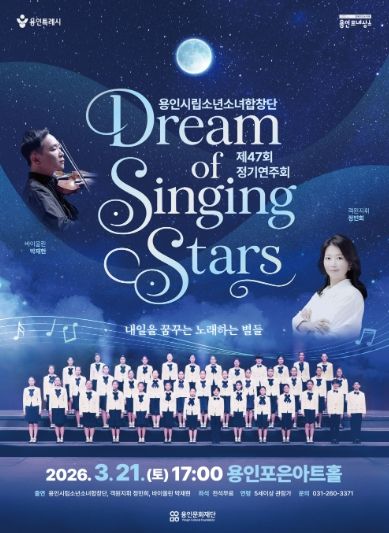 [와이뉴스] 용인문화재단은 오는 3월 21일 용인포은아트홀에서 용인시립소년소녀합창단 제47회 정기연주회'Dream of Singing Stars'를 개최한다고 밝혔다.