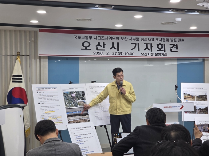 [와이뉴스] 오산시는 전날 국토교통부 중앙시설물사고조사위원회가 발표한 서부로 붕괴사고 조사 결과와 관련해 기자회견을 열고, 유지관리 및 사고 전후 초동 대응 과정에 대한 구체적인 경위를 설명했다.