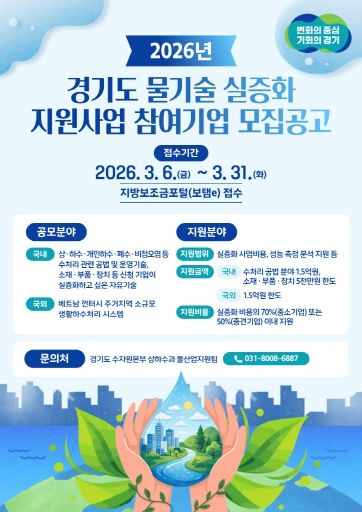 [와이뉴스] 경기도가 ‘2026년 경기도 물기술 실증화 지원사업’ 참여 기업을 공개 모집한다.