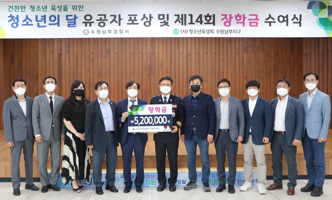 ‘청소년의 달’을 맞아 수원남부경찰서(서장 오문교)는 청소년육성회(수원남부지구회)와, 도움이 필요한 청소년에게 장학금을 전달하고 청소년 선도에 힘써준 청소년육성회 회원 등에 감사장을 전달하는 행사를 개최했다.