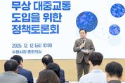 [와이뉴스] 수원특례시는 12일 시청 중회의실에서 ‘수원시 무상대중교통 도입 정책토론회’를 열고, ‘수원형 무상대중교통’ 도입 정책 방향을 공유했다. 이날 정책토론회는 주제 발표와 종합토론으로 진행됐다. 김채만 경기연구원 선임연구위원이 ‘미래 대중교통 정책방향-쿠리치바 대중교통 사례’, 김숙희 수원시정연구원 선임연구위원이 ‘수원시 무상대중교통 도입 방향’을 주제로 발표했다. 수원시는 사회초년생 청년과 어르신의 교통비 부담을 덜어주기 위해 내년 1월 1일부터 무상대중교통 지원사업을 시작한다. 지원 대상은 19~23세 청년, 70세 이상 어르신이다(신청일 기준). 19~23세 청년이 K-패스 교통카드로 대중교통을 이용하면 한 달에 최대 2만 3100원(연 27만 7200원)을 환급한다. 어르신은 농협에서 우대 교통카드(G-PASS)를 발급받아 사용하면 실제 사용 금액에 대해 분기별 최대 6만 9300원(연 27만 7200원 한도)를 지원한다. 종합토론에는 아주대학교 오영태 교수, 한국교통연구원 박준식 본부장, 경기대학교 김정화 교수, 경기도 광역교통정책과 윤태완 과장이 참여했다.