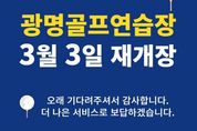[와이뉴스] 광명도시공사는 약 3개월간의 개보수공사를 마치고 오는 3월 3일 광명골프연습장을 재개장 한다고 밝혔다. 지난해 12월부터 시작된 공사는 폭설의 영향을 받은 골프망 전체 교체 공사를 시작으로 △로비 인테리어 △페어웨이 교체 △철탑 보수 및 도색, △전층 타석부 인조잔디 교체 △화장실 및 샤워실 공사 등 노후된 골프연습장 전반에 대한 개보수를 포함한다. 해당 공사를 통해 골프연습장의 시설 안전성을 강화하고, 쾌적한 이용 환경을 조성함으로써 고객 만족도를 한층 높일 수 있을 것으로 기대한다. 서일동 사장은 “광명골프연습장 개장 이래 처음 실시한 대규모의 공사로 시설 노후화에 따른 이용객 안전 확보를 위해 꼭 필요한 공사였다”며, “오래 기다려주신 골프연습장 회원분들과 시민 여러분께 감사 말씀을 드린다”고 전했다.