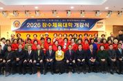 [와이뉴스] 함안군은 지난 26일 함안군체육회가 함안문화예술회관 연회장에서 ‘2026 장수체육대학 개강식’을 성황리에 개최했다고 밝혔다. 이날 개강식에는 조근제 함안군수, 정병옥 함안군체육회장, 이만호 함안군의회 의장을 비롯한 도의원과 군의원, 이학동 대한노인회 함안군지회장과 장수체육대학 참여 어르신 등 300여 명이 참석했다. 행사는 2026년도 운영계획 보고를 시작으로 주요 내빈 격려사와 축사, 기념촬영 순으로 진행됐으며, 장수체육대학의 새 출발을 함께 축하하는 자리로 마련됐다. 2002년 처음 운영을 시작해 올해로 23회를 맞은 장수체육대학은 어르신들의 체력 증진과 건강한 노후생활을 지원하기 위해 체계적인 운동 프로그램을 운영하고 있으며, 지역 어르신들의 꾸준한 참여를 얻고 있다. 올해는 모두 523명이 프로그램에 참여한다. △가야 148명 △칠원 98명 △군북 59명 △산인 103명 △함안 62명 △대산 53명이다. 가야읍 함안체육관, 칠원읍 함안국민체육센터, 군북면 군북3·1기념체육관, 산인면 종합복지관, 함안면 종합복지회관, 대산면 주민자치복합센터 6곳에서 매주 2회 생활체조와 실버체조,