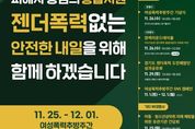 [와이뉴스] 경기도와 경기도여성가족재단 젠더폭력통합대응단은 여성폭력추방주간(11월 25일~12월 1일)을 맞아 도민과 함께하는 다양한 행사를 추진한다고 13일 밝혔다. 여성폭력추방주간은 유엔(UN)이 제정한 ‘세계 여성폭력 추방의 날’(11월 25일)을 기념하기 위해 마련된 기간으로, 폭력 없는 사회 실현과 피해자 보호의 중요성을 되새기기 위한 뜻깊은 주간이다. ‘피해자 중심의 통합지원, 젠더폭력 없는 안전한 내일을 위해 함께 하겠습니다’라는 표어 아래 도와 대응단은 도내 대학 인권센터 종사자 역량강화 워크숍(11월 6일)에 이어 ▲도민 대상 젠더폭력 예방교육(11월 3일~12일) ▲아동·청소년 성착취 피해 대응 간담회(11월 25일) ▲도민예방단 성과공유회(11월 29일) ▲아동·청소년 성착취 피해예방을 위한 오프라인 아웃리치(거리상담)(12월 1일) 등 현장 중심의 프로그램을 연이어 추진한다. 또한 11월 한 달간 ‘젠더폭력 없는 내일을 위한 1,000인 희망 챌린지’ 누리소통망(SNS) 캠페인을 진행하고 있으며, 도내 각 기관이 추진하는 주요 행사를 한눈에 볼 수 있는 ‘경기도 여성폭력추방주간 행사 안내지