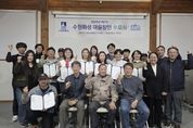 [와이뉴스] 수원특례시가 29일 화성사업소에서 ‘제2기 수원화성 마을장인 사업’ 수료식을 열고, 교육생 14명에게 수료증을 수여했다. 수원화성 마을장인 사업은 수원화성의 경미한 훼손을 시민이 보수할 수 있도록 국가유산수리기능자를 양성하는 사업이다. 수원시는 지난해 3월 경기문화유산돌봄센터와 마을장인 사업의 원활한 운영을 위한 업무협약을 체결하고, 제2기 수원화성 마을장인 사업 운영을 시작했다. 제2기 교육은 이론교육(6월~8월)과 실기교육(9월~10월), 특강으로 진행됐다. 수원화성의 역사와 가치, 설계철학과 구조, 한식 목구조·재료·보수 방법 등의 이론 교육을 했다. 실기교육은 경기문화유산돌봄센터와 함께 한식미장 이론과 실습을 병행했다. 이날 수료식에서 대한민국 한식미장 김진욱 명장이 특강을 했다. 또 수료생들을 대상으로 수원화성 남치 여장 해체보수공사 현장 견학 프로그램을 운영했다. 수료생들은 내년 4월 국가유산수리기능자 시험을 대비한 심화 교육에 참여한다. 수원시는 수료생 중 국가유산수리기능자 시험 합격자를 대상으로 마을 장인을 선발할 예정이다. 선정된 마을 장인은 성벽의 줄눈,