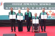 [와이뉴스] 진안군은 5일 군청 광장에서 2026년 개최 예정인 전북자치도 양대체전의 성공적인 개최를 다짐하는 조직위원회 출범식 및 성공개최 결의대회를 열었다. 이번 행사는 진안군 역사상 최초로 개최되는 제63회 전북특별자치도민체육대회(2026. 9. 4.~9. 6.)와 제20회 전북특별자치도민장애인체육대회(2026. 9. 18.~9. 20.)의 성공 개최를 위해 마련된 자리로 2026년 전북자치도 양대체전 조직위원, 범군민참여위원, 진안군민 등 약 500여 명이 참석했다. 행사는 식전공연을 시작으로 ▲조직위원 위촉장 수여 ▲기념사 및 축사 ▲준비상황 보고 ▲결의문 낭독 ▲성공개최 퍼포먼스 순으로 진행됐다. 이날 결의대회에서는 ‘생태치유 진안에서 하나되는 전북도민’을 슬로건으로, 군민 모두가 주인이 되는 대회를 만들겠다는 다짐이 이어졌다. 행사 후에는 체전 성공개최를 염원하는 ‘군민 걷기행사’가 이어져 출범식 분위기를 한층 고조시켰다. 특히, 진안군은 이번 대회를 인근 지역과의 긴밀한 협력체계 구축과 체육 인프라 확충 노력을 통해 성사시켰다는 점에서 주목받고 있다. 이는 지역 간 상생과 연대의 결실
