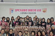 [와이뉴스] 수원시여성리더회가 5일 행궁동 어울림센터 공용주방에서 ‘장학기금 마련 젓갈 포장 행사’를 열었다. 김미애 수원시여성리더회 총회장과 이지영 수원시여성단체협의회 명예회장 등 회원 20여 명이 참여해 명란젓과 낙지젓 등 4종의 젓갈을 소포장해 판매했다. 수익금은 장학금으로 기부할 예정이다. 김미애 총회장은 “장학기금 마련에 동참해 주신 모든 분께 감사드린다”며 “이번 행사가 학생들의 미래를 응원하는, 작은 힘이 되길 바란다”고 말했다. ‘수원시 여성지도자대학’ 수료생으로 구성된 수원시여성리더회는 2004년 출범 이후 한부모가정 지원, 저소득 중·고등학생 장학금 후원, 복지관 중식 봉사, 소외계층 김장 봉사, 헌혈 캠페인 등 지역사회를 위한 나눔·봉사 활동을 꾸준히 하고 있다.