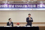 [와이뉴스] 성남시는 지역사회를 위해 기부를 실천한 20개사에 11월 5일 ‘ESG(환경·사회·지배구조) 나눔기업 인증패’를 전달했다. ESG(환경·사회·지배구조) 나눔기업은 경기사회복지공동모금회를 통해 1000만원 이상을 기부한 기업과 법인을 말한다. 경영 이익금을 지역사회에 환원해 사회적 책임을 다하는 기업·법인 인증에 의미를 둔다. 인증패 전달식은 이날 오후 4시 시청 3층 한누리에서 신상진 성남시장과 김효진 경기사회복지공동모금회 사무처장, 20개사 기업 대표 등이 참석한 가운데 진행됐다. 이날 인증패를 받은 기업·법인은 △NH농협은행 성남시지부 △성남제일새마을금고 △성남동부새마을금고 △삼영전자공업㈜ △㈜엔에스쇼핑 △㈜코원에너지서비스 △미션시스텍㈜ △㈜리워터(옛 에코비트워터) △㈜모백스 △㈜명세아이앤씨 △신구대학교 △㈜디엔에스사회적기업 △㈜더클레르(옛 중원기업) △테크밸리㈜ △㈜삼성환경 △상호통상㈜ △㈜프로켐 △한성산업㈜ △㈜티앤디소프트 △㈜아티타야 등이다. 이들 기업·법인은 지난 한 해 동안 1000만~2억6600만원을 기탁해 총 15억2432만원을 지역사회에 환원했다. 해당 기