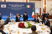 [와이뉴스] 조르자 멜로니 이탈리아 총리의 공식 방한을 기념해 오늘 진행된 공식 오찬은 우리 고유의 식재료를 이용한 한식 메뉴를 바탕으로 하되, 이탈리아인에게도 익숙한 조리법 및 식재료를 조화롭게 활용해 눈길을 끌었다. 멜로니 총리와 대표단의 기호도 반영한 메뉴이다. 주전부리로 나온 수제 전병은 감태칩, 찹쌀칩, 홍국쌀칩을 이용해 이탈리아 국기색을 표현했고 완도산 전복을 곁들인 갈비찜과 더운 야채 요리는 간장 양념에 이탈리아산 레드 와인의 풍미를 더해 대한민국과 이탈리아 양국의 우호적인 발전을 기원했다. 특히 이탈리아의 대표적인 파스타인 라비올리 모양으로 빚은 수제 만두와 함께 끓여낸 떡만둣국은 올해 첫 공식 방한한 멜로니 총리와 함께 새해를 축하하는 의미를 담았다. 멜로니 총리와 이탈리아 공식 수행원들은 특히 라비올리 모양의 수제 떡만둣국을 맛보며 한식의 맛에 감탄했다. 한편, 오찬 동안 연주된 실내악 중 이탈리아 작곡가인 엔리오 모리꼬네가 작곡한 ‘넬라 판타지아’를 비롯한 익숙한 노래에 반가움을 표했습니다. 멜로니 총리의 취향을 반영해 마이클잭슨의 음악이 연주되기도 했다. 수행원들은