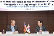[와이뉴스] 이상일 용인특례시장이 13일 용인의 자매도시인 미국 텍사스주 윌리엄슨카운티의 대표단과 만나 양 도시의 발전을 위한 협력 방안을 논의했다. 이날 시청 접견실에서 이 시장은 스티븐 스넬(Steven Snell) 윌리엄슨카운티장과 러스 볼즈(Russ Boles) 윌리엄슨카운티 커미셔너, 데이브 포터(Dave Porter) 윌리엄슨카운티 경제개발파트너십 전무이사를 만나 경제와 산업, 교육 등 다양한 분야에 대해 의견을 나눴다. 이날 이상일 시장을 만난 스티븐 스넬 윌리엄슨카운티장은 전임자인 빌 그래벨(Bill Gravell) 윌리엄슨카운티장에 이어 지난 4월 신임 윌리엄슨카운티장으로 취임했다. 이상일 시장은 “양 도시는 도시 이름을 붙인 명예도로명을 부여하면서 우정을 쌓고, 교류협력을 활발하게 하고 있다”며 “윌리엄슨카운티 대표단과 텍사스 주립대학교 관계자들이 용인에 있는 단국대학교 관계자를 만나 협력관계 구축에 대한 논의를 진행하는 것으로 알고 있는 데 양 도시에 있는 대학이 교류하는 것은 매우 뜻 깊은 일”이라고 말했다. 이 시장은 “윌리엄슨카운티에는 첨단산업 관련 기업들의 입주가 이어지고