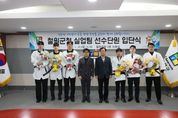 [와이뉴스] 철원군은 1월 12일 11시 30분 철원군청에서 2026년 신규 및 재계약 유도 및 태권도 실업팀 선수 입단식을 개최했다. 먼저, 유도팀 재계약 선수들은 2025 제106회 전국체육대회 금메달리스트인 –100kg 원종훈 선수, 동메달 리스트인 –90kg 이승수 선수와 각종 전국대회 1위에 빛나는 –60kg 이상민 선수와 재계약을 했다. 태권도팀은 2025 제106회 전국체육대회 은메달리스트인 –80kg 서강연 선수를 신규영입했고, 전국태권도대회 수상자들인 +87kg급 김민서, -80kg급 조재연 선수와 재계약을 체결했다. 우수 선수들을 보강한 철원군 유도 및 태권도 실업팀은 선수들의 경기력 향상과 좋은 성적을 내어 철원군 체육발전 및 홍보에 큰 기여를 할 것으로 기대하고 있다. 이현종 철원군수는 “우리 철원군 실업팀에 입단한 것을 진심으로 환영한다. 2025년 좋은 성적을 거두어 준 만큼, 붉은 말의 해인 2026년도에도 영광의 한 해로 만들 수 있게 많은 지원과 관심을 보내겠다”고 전했다.
