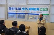 [와이뉴스] 남양주시는 지난 12월 3일 다가오는 겨울철 한파로 인한 동파 및 누수 발생에 대비해, 상수도 협력업체들과 간담회를 개최했다고 밝혔다. 이날 간담회에는 수도과장, 급수팀장, 누수방지팀장 등 시청 관계자를 비롯해 상수도 급수공사를 대행하는 20개 협력업체 관계자가 참석했다. 시는 △민원 현장 관리 △작업자 안전 교육 및 안전관리 △누수복구 공사 당부사항 등을 전달했다. 이어 협력업체들의 건의사항을 청취하고, 해소 방안을 마련하는 등 상호 협력체계 강화를 위한 개선 방안을 함께 논의했다. 이와 함께 시는 한파로 인한 동파 피해를 최소화하기 위해 상수도 시설물을 사전에 점검하기로 했다. 또한 누수 등 각종 상수도 사고 발생 시에는 휴일과 야간에도 비상근무를 통해 시민 불편을 최소화하는 대응 방안도 함께 논의됐다. 김춘 수도과장은 “시민들께 안전하고 깨끗한 생활용수를 제공할 수 있도록 늘 협조해 주심에 감사드리며, 올해도 수도과와의 유기적인 협력을 통해 시민들이 보다 만족스러운 수돗물을 공급받을 수 있도록 힘써 주시기를 부탁드린다”고 전했다.