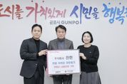 [와이뉴스] 군포시는 지난 11일 공단로에 위치한 포장용 플리스틱 성형용기 제조업체인 주식회사 진한으로 부터 후원금 1,000만원을 기탁 받았다고 밝혔다. 기탁식에는 하은호 군포시장, 배성한 이사 등 관계자가 참석하여 담소를 나눴다. 이날 기탁식에 참석한 배성한 이사는 “연말을 맞이하여 관내 어려운 이웃과 온정을 나눌 수 있어 기쁘다. 군포시 관내 기업으로 지역사회의 사회보장 발전을 위해 기여하는 건강한 기업이 되도록 노력하겠다”고 말했다. 하은호 군포시장은 “매년 지역사회의 어려운 이웃을 위해 나눔에 앞장서며 지역사회보장 발전에 기여하고자 노력하는 ㈜진한의 임직원 및 관계자에 감사드린다. 앞으로도 지역과 함께 성장하는 기업이 되길 진심으로 바란다”고 전했다. 이번 후원금은 사회복지공동모금회를 통해 관내 취약계층에 전달 할 예정이다.
