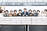 [와이뉴스] (사)경기도여성단체협의회 광주시지회는 17일 지역 내 취약계층을 위해 먹거리 꾸러미 40세트를 광주시에 전달했다. 이번 나눔은 지난 11월 장수돌침대에서 기탁한 성금을 활용해 마련됐으며 소머리국·참치캔·미역 등 5만 원 상당의 식료품으로 구성된 꾸러미는 협의회 회원들이 정성스럽게 포장해 사례 관리 및 긴급복지지원 대상 가구에 전달됐다. 양미순 광주시여성단체협의회장은 “다가오는 연말, 도움이 필요한 이웃들에게 따뜻한 마음을 전할 수 있어 매우 뜻깊다”며 “작은 정성이지만 어려운 분들께 힘이 되길 바라며 앞으로도 지역사회의 따뜻한 나눔 문화가 지속될 수 있도록 노력하겠다”고 말했다. 이에 대해 방세환 시장은 “지역사회의 나눔 확산에 앞장서는 광주시여성단체협의회에 감사드린다”며 “소외되는 이웃 없이 누구나 따뜻한 겨울을 보낼 수 있는 광주시를 만들기 위해 최선을 다하겠다”고 전했다. 한편, 광주시여성단체협의회는 여성의 사회참여 확대와 복지 증진을 위해 다양한 봉사활동과 사업을 펼치며 지역사회에서 든든한 역할을 이어가고 있다.