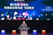 [와이뉴스] 안성시자원봉사센터는 12월 10일 안성맞춤 아트홀 소공연장에서 ‘제26회 자원봉사자의 날 기념행사’를 개최했다. 이번 행사는 안성시장, 국회의원, 시의회 의장 등 내빈을 비롯해 수상자와 자원봉사자, 유관 기관장, 축하객 등 약 300명이 함께해 지역사회 나눔과 봉사의 가치를 되새기는 뜻깊은 자리로 마련됐다. 행사는 2025년도 활동 영상 상영과 뮤지컬팀 “인터미션”의 식전 공연으로 문을 열었으며, 이어 본식에서는 한 해 동안 헌신적으로 활동한 개인과 단체 자원봉사자들에게 감사와 격려의 뜻을 전하는 시상식이 진행됐다. 안성시자원봉사센터 김동성 센터장은 ‘올 한 해에도 지역사회의 다양한 현장에서 따뜻한 마음으로 함께해 주신 자원봉사자분들에게 진심으로 감사드린다’라며 ‘앞으로도 자원봉사자들이 자긍심을 가지고 지속적으로 활동할 수 있도록 최선을 다해 지원하겠다’라고 전했다.