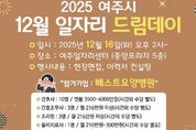 [와이뉴스] 여주시는 오는 12월 16일 오후 2시 여주일자리센터(세종로 14번길 18, 중앙프라자 5층)에서 ‘2025년 마지막 여주시 일자리드림데이’를 연다. 이번 행사는 가남읍에 있는 베스트요양병원이 참여해 간호사 10명, 간호조무사 3명, 물리치료사 1명, 조리원 3명, 환경미화원 1명 총 18명을 채용한다. 지원 자격은 간호사·간호조무사 자격소지자, 신경발달치료(NDT)와 보바스(BOBATH) 교육을 이수한 물리치료사 등이다. 올해 마지막 행사인 이번 일자리드림데이는 의료 돌봄 분야의 채용이 이뤄져 지역 사회의 안정적인 돌봄 인력 확보에도 도움이 될 것으로 보인다. 시 관계자는 “2025년 동안 일자리드림데이에 참여해 준 모든 관내 기업체와 구직자에게 감사한 마음을 전한다”라며, “올해 마지막 행사에서도 구직자가 따뜻한 연말을 보낼 수 있도록 최선을 다하겠다”라고 말했다